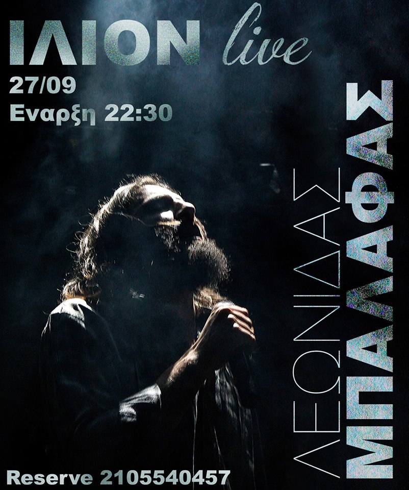 Ο Λεωνίδας Μπαλάφας, θα εμφανιστεί με το ακουστικό σχήμα την Παρασκευή 27 Σεπτεμβρίου στην Ελευσύνα στο Ίλιον Cafe. Μαζί με τους μουσικούς του θα παρουσιάσουν , τραγούδια από τις δισκογραφικές του δουλειές,